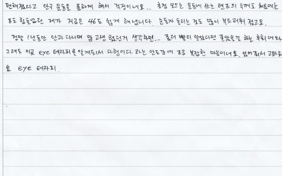 초점 모으는 운동에 쓰는 렌즈의두께도